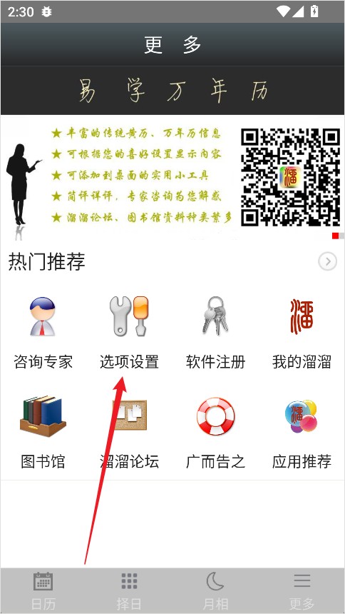 1、打开易学万年历全能版,点击底部导航栏中的【更多】选项;