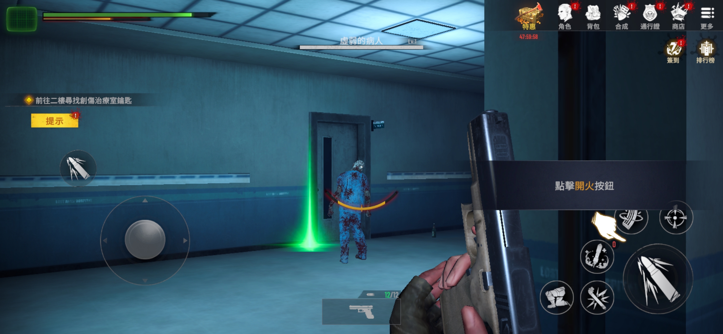 1、探索医院各个角落,搜寻线索,了解医院的情况。