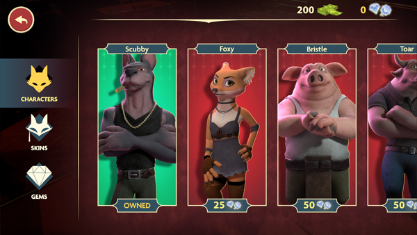 4、玩家可以从狐、狗、猪、牛,犀牛,兔,六种动物形象之中选择自己喜欢的角色形象进入游戏。