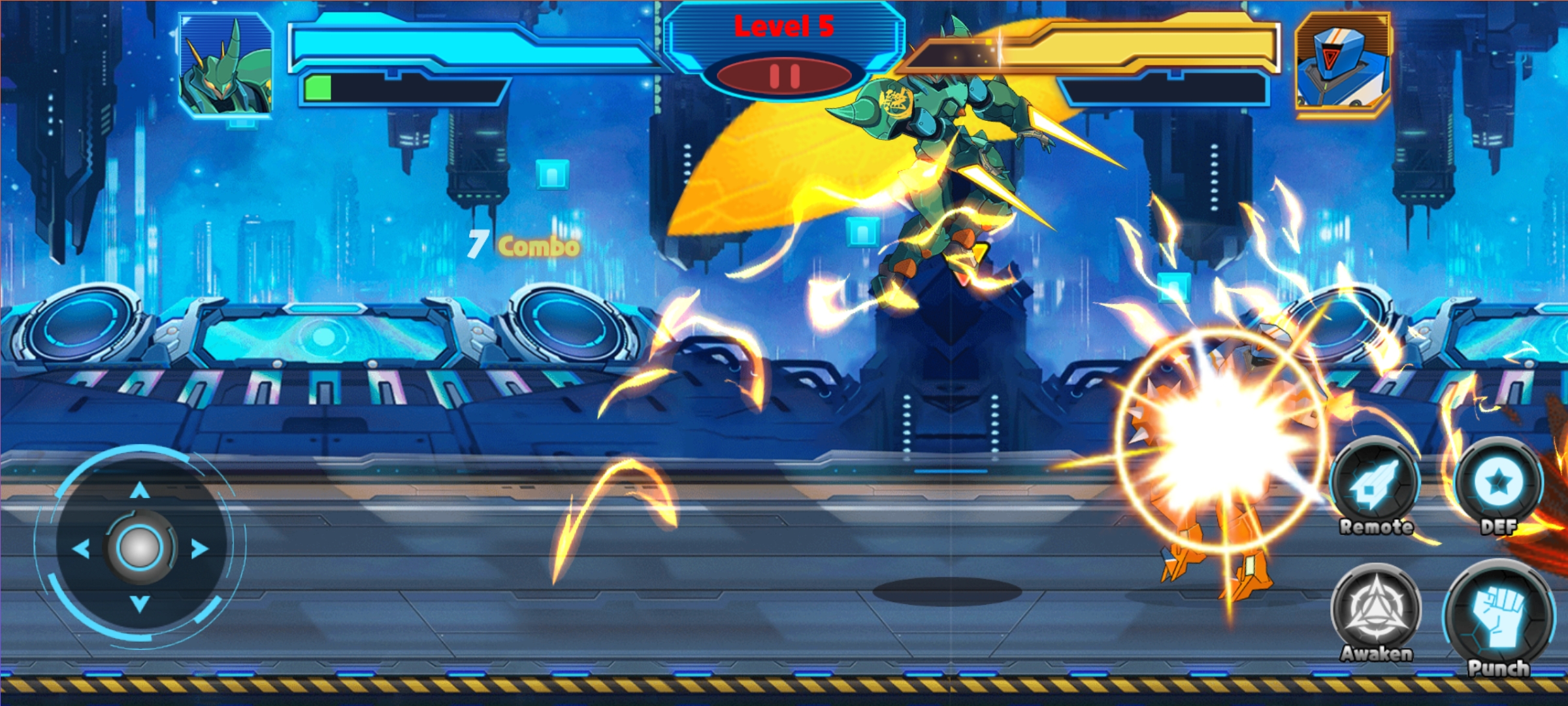 机器人格斗机甲竞技场游戏是一款动作格斗闯关游戏。玩家在游戏中需要操纵你的机器人进行格斗闯关,游戏内采用了1v1的战斗模式,经典的横版战斗的界面UI布局。游戏画面设计精致,多种不同类型的机器人可以选择,玩家还可以对机器人进行升级来提升机器人的能力属性,增大对战胜利的概率。游戏玩法简单,操作容易能够迅速上手游戏。感兴趣的玩家快来下载本款游戏一起开启游戏进行一场冒险吧!