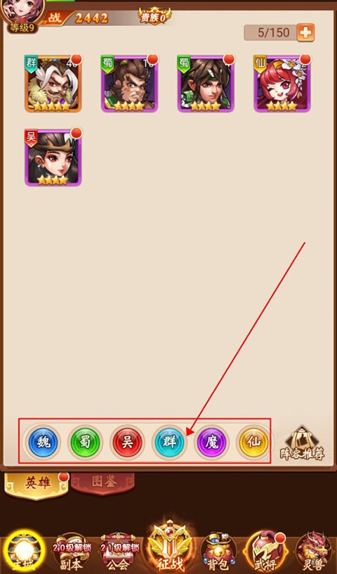 1、武将按阵营分为魏、蜀、吴、群、魔、仙、六个阵容。