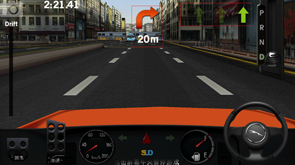 4、根据游戏上方显示的方向以及距离进行驾驶,及时转弯!