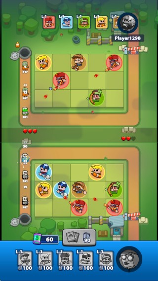 3、资源分配,战斗以能量为基础,能量可以召唤英雄,合并升级等。