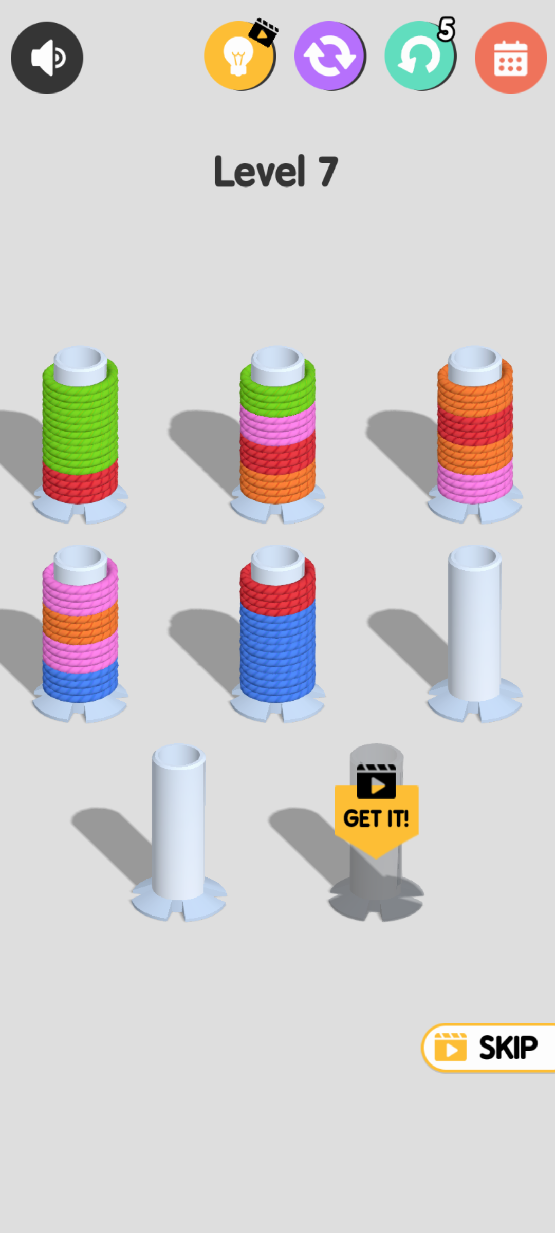 3、关卡难度逐渐增加,越往后毛线数量越多,需要整理的越多。