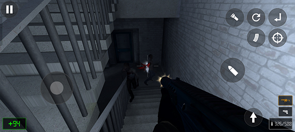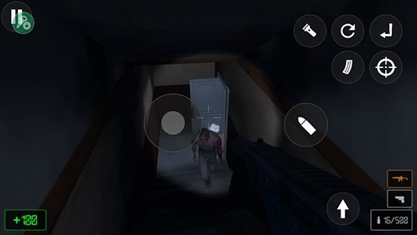 6、在下楼看到僵尸的时候,只需要使用枪械守住楼梯口即可;