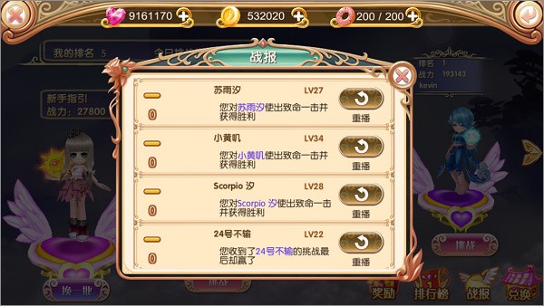 界面右下角分别是【奖励】【排行榜】【战报】【兑换】。