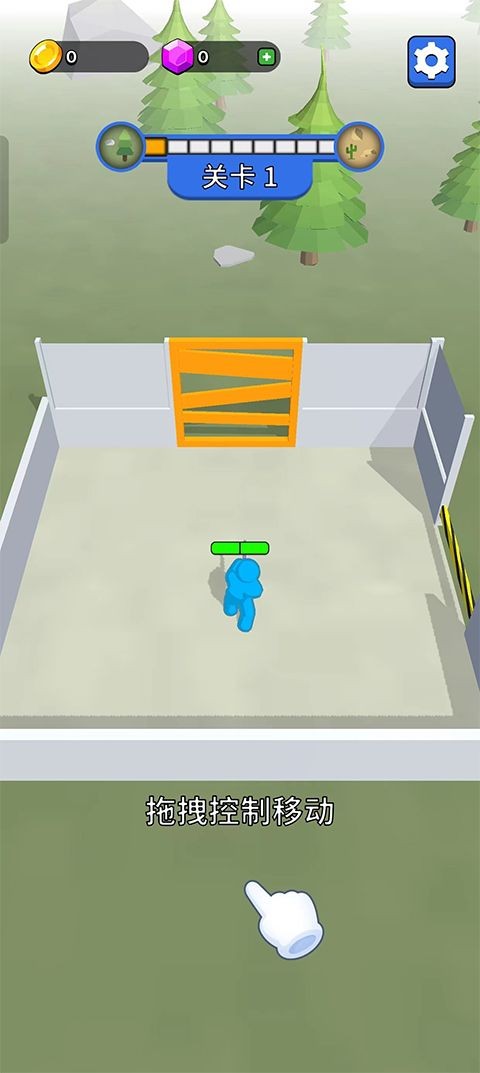 2、通过点击拖拽屏幕来控制角色的移动轨迹。