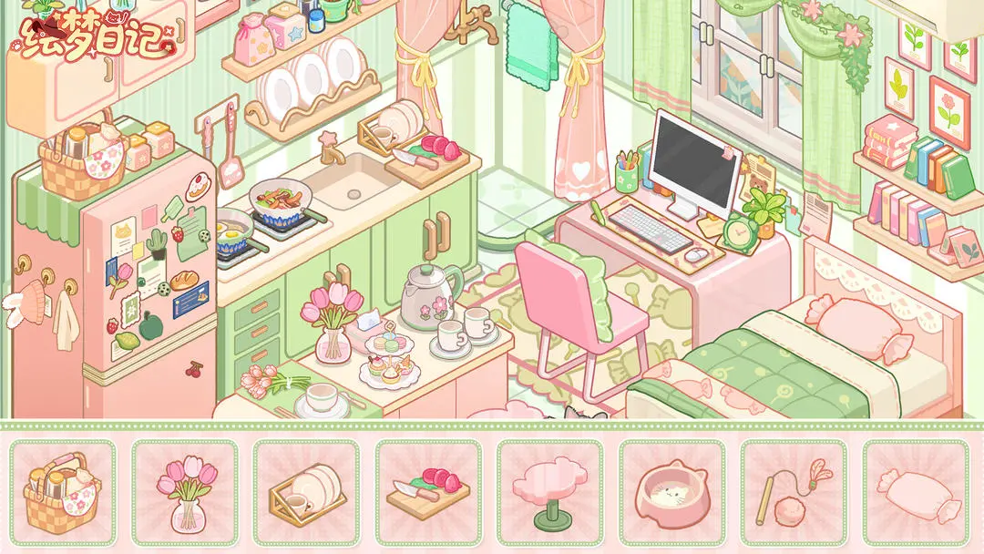 绘梦日记游戏是一款治愈好玩的模拟经营类手游。游戏内画风可爱,色彩柔和,背景音乐轻快,塑造出来了一个轻松治愈的游戏氛围。玩家可以在游戏中进行美食的制作,店铺的经营,小屋的自由装修和角色的自由换装等众多游戏玩法,游戏内容丰富。游戏内提供了海量的装饰家具和服饰配饰,玩家可以自由的搭配组合。游戏内没有时间限制和破产的压力,减小玩家的游戏压力,玩家可以舒适的进行游戏。感兴趣的玩家快来下载游戏,一起开启一场游戏之旅吧!