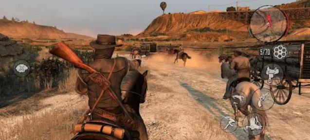 荒野大镖客1手机版游戏是一款西部题材的开放世界动作冒险游戏。游戏是由电脑端移植而来,所有的电脑端玩法内容都被称为移植到移动端之上。玩家在游戏中将会扮演由于家人性命要挟而需要被迫追捕昔日帮派同伴的约翰·马斯顿。游戏场景设定在美国西部,场景地图广阔且逼真,玩家需要探索广阔的美国西部,在追捕同伴的旅途之中应对一路上发生的各种事件。感兴趣的玩家快来下载游戏,一起开启一场游戏之旅吧!